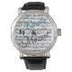 Noten geschrieben von Mozart auf einer Vintagen Armbanduhr aus schwarzem Leder. Geschenk für den Musikliebhaber oder musikliebenden phantastischen Musiklehrer, der in Ihrem Leben ist. Die zeitlose Vintage Herrenuhr bietet ein großes Zifferblatt sowie ein Quarzwerk mit drei Zeigern und einem Lederarmband. Der klassische Look ist perfekt geeignet für formelle Anlässe oder auch das tägliche Vergnügen. Passen Sie das Gesicht mit Ihrem Namen und Designs an, um eine Uhr perfekt auf Ihre Persönlichkeit und Ihren Stil abgestimmt zu machen.