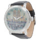 Uhr, Vintage Männeruhr mit schwarzem Lederarmband