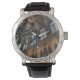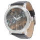 Uhr, Vintage Männeruhr mit schwarzem Lederarmband