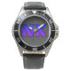 Herrenuhr aus Edelstahl mit schwarzem Lederarmband