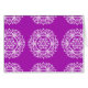 Dieses weiße Mandala sitzt auf einem hellen, lila Hintergrund. Die Farbe ist hell und kreativ. Teil der Rosenn Mandala Kollektion. Dieses Design wird möglicherweise nicht so hell gedruckt, wie es online erscheint.