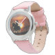 Kinderuhr aus Edelstahl mit rosa Lederarmband