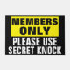 Mitglieder nur Geheimknopf verwenden - dies kann als seriöse Türmatte funktionieren, wenn Sie das monatliche Treffen für Ihr lokales Kapitel der Illuminati veranstalten. Oder es kann eine lustige Neuheit an der Tür zu Ihrem schlichten alten Haus sein, um unerwünschten Firmen und Anwälten zu sagen, dass sie ihre Knöchel klopfen können, aber sie werden nicht gelassen.