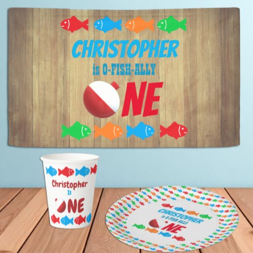 Ein farbenfroher Angeltag zum ersten Geburtstag, um 'O'Fish-Ally One' zu feiern. Pop aus Rot, Grün, Orange und Blau