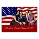 Öl malt Präsident Barack Obama und Familie mit der amerikanischen Flagge hinter ihnen.