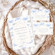 A delicate underwater-inspired design featuring soft watercolor sea animals, gentle ocean tones, and a refined arched layout that frames your details beautifully. The subtle pattern of dolphins, octopus, and sea creatures adds a whimsical yet calming touch, while the minimal center keeps everything clean and easy to read. Perfect for a serene, elegant baby shower with a coastal or ocean theme.