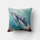 A oceanic themed pillow with a beautiful illustration of an impasto style whale swimming deep in the sea by vibrant colorful coral. A really beautiful coastal art. Colors used are teal, blue and soft coastal colors.