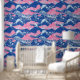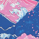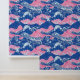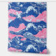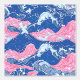 Ein nahtloses, von Hand gezeichnet Muster mit einem rauen, dunkelblauen Ozean mit rosa Wellen und Wirbel mit weißem Wasser. Das Design verbindet dynamische ozeanische Elemente mit einer skurrilen, künstlerischen Touch und schafft so einen kühlen und lebendigen visuellen Effekt.