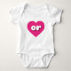 Dieser Baby-Ramper verfügt über ein lebhaftes, heiß rosa Herz, das die fett-, weiß-, abgerundeten Kleinbuchstaben enthält oder eine spielerische Abkürzung für den Staat von Oregon darstellt.
