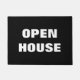 OFFENES HAUS-Türmchen | Schild mit schwarzem und w Fußmatte