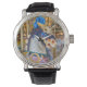 Uhr, Vintage Männeruhr mit schwarzem Lederarmband