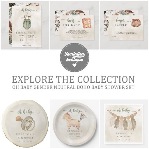 Oh Baby Gender Neutral Boho Babydusche Einladung Geschenkanhänger