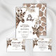 Oh, Baby. Ein hübsches Design mit lustigen Aquarellfarben Mama und Baby Giraffe, tropischen Blätter und Giraffen-Hautmustern auf der Rückseite. Diese Einladungskarte ist geschlechtsneutral und kann sowohl für Mädchen als auch für Jungen verwendet werden. Mit dem Vorlagenfeld können Sie ganz einfach Ihre eigenen Daten hinzufügen