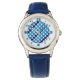 Diagonale Reihen Herzen in Blautönen Akzent dieser lustigen Armbanduhr in einem Kinderstil gezeigt, aber auch Spaß für Erwachsene. Die Koordination der blauen Zahlen auf weißem Hintergrund macht es einfach, die Zeit zu bestimmen.
