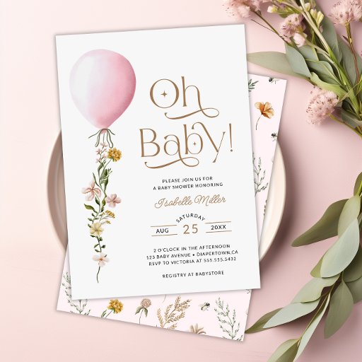 Oh Baby Pink Balloon Floral Baby Dusche Einladung