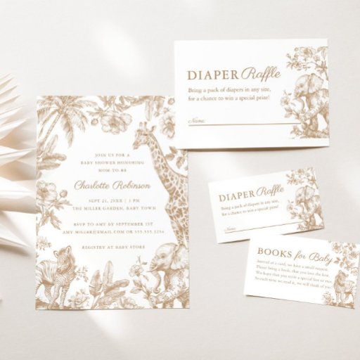 Gender Neutral Beige Toile Safari Baby ShowerDesignt von Mariëlle S.