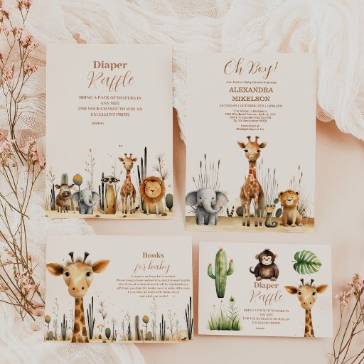Oh Boy Niedlich Safari Animal Greenery Raffle Diap Begleitkarte