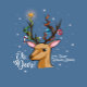 Dies ist ein zeichn eines Hirsches, der verärgert aussieht, weil seine Geweihten wie ein Weihnachtsbaum verziert sind. Oben ist sogar ein leuchtender Stern. Er ist Sprichwort "Oh Reh, es ist wieder da..." Man kann auch Schnee im Hintergrund sehen.