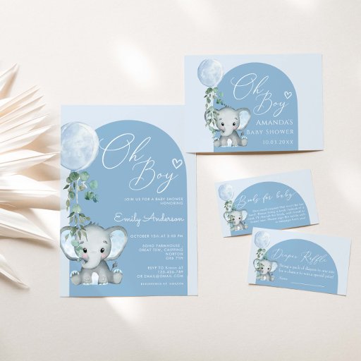 Oh Junge Elefantenjunge mit Balloon Babydusche Einladung