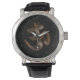 Uhr, Vintage Männeruhr mit schwarzem Lederarmband
