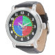 Uhr, Vintage Männeruhr mit schwarzem Lederarmband