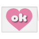 Diese Karte zeigt ein ruhiges, cooles rosafarbenes Herz, das die fett gerundeten, weißen Kleinbuchstaben ok enthält, eine spielerische Version der Abkürzung für Oklahoma, den früheren Staat. Die Karte ist innen leer und wartet auf Ihren personalisierten Text oder Ihre handgeschriebenen Gefühle.