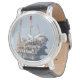 Uhr, Vintage Männeruhr mit schwarzem Lederarmband