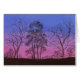 Eine Aquarellmalerei von ACEO aus einer alten Zaunreihe und Herbstbäume, die gegen die Falten und die sich vertiefende Blues des Abends, Dämmerung des Himmels silhouiert.