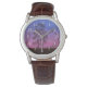 Uhr, Kinderuhr aus Edelstahluhr mit lila Lederarmband