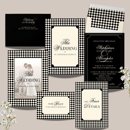 Old Money Black Ivory Checkered Rehearsal Dinner Einladung