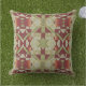 Schönes, zeitgenössisches Olivgrün, bordeauxrot, ockergelb und kaffeebräunlich Kilim Stammmosaik Muster. Erhältlich auf einer Vielzahl von modernen Outdoor-Akzenten und Mode inspiriert Accessoires für die Dekoration Ihrer Veranda, Terrasse, Pool-Deck oder Hinterhof Sitzecke Ihres Strandhauses, Land-Hütte, Blockhütte, See- oder Flussurlaub Zuhause.