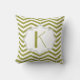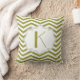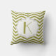 Olive grün, weiß Zickzack Zick-Zack-Muster werfen/werfen Akzent dekorative Kissen mit Monogramm in einem grauen Rahmen.