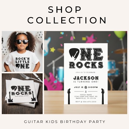 Roll into your first milestone with this cool One Rocks guitar pick birthday party paper plate for one year old kids. Great for little rockstars who love music. Personalize it with your event details for a rocking event that is unique to you.