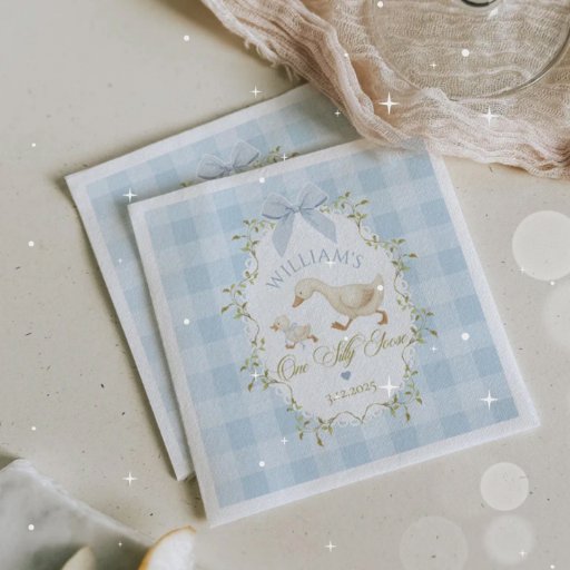 One Silly Goose Blue Gingham BirthdayDesignt von Julia J