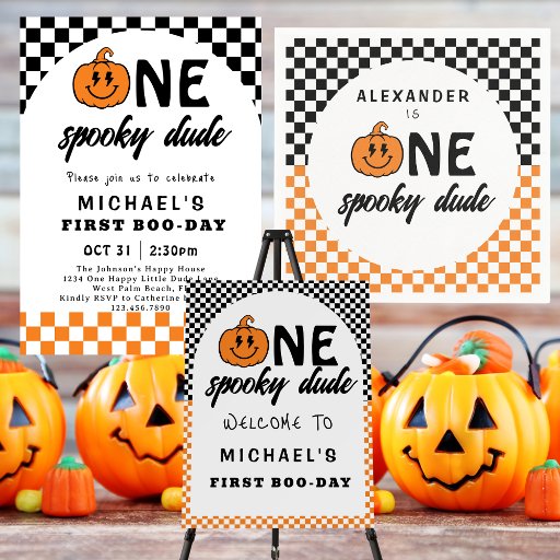 One Happy Dude Boy's Retro Halloween 1st BirthdayDesignt von Jen Mercado