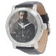 Uhr, Vintage Männeruhr mit schwarzem Lederarmband