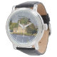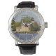 Uhr, Vintage Männeruhr mit schwarzem Lederarmband