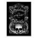 Ein Mix aus Vintage-Bildern (ein aufwändig dekorativer Viktorianischer Rand und Schädel) umgibt den Text "Ophelias sehr bitterer Absinth".