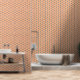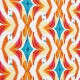 Orangefarbene und blaue Diamanten und Kurven auf weißem Hintergrund schaffen ein helles und feines Muster für diese Tapete.