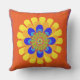 Eine lebendige Blume mit Blütenblättern in Orange, Rot Orange, Kobaltblau, Hellblau, Grün und Gelb.