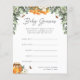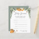 Lass, dass sich die Gäste beim Geburtstag und bei der Zeit, dem Gewicht und der Länge des Babys das Beste vorstellen! Platzieren Sie am Veranstaltungseingang einen Stapel, übergeben Sie ihn oder verließ einen Stapel an jeder Stelle. Macht auch dem Mama-to-be Spaß, wenn es in einer hübschen Box oder einem Bindemittel kompiliert wird. Dieses naturlich inspirierte Design, das auf die Babydusche Orange Blossom Honey abgestimmt ist, besticht durch grünes Aquarellgrün, Honig und winzige Illustrationen von Honigbienen. Personalisieren Sie mit der Mutter, um den Namen und Baby-Dusche Datum am unteren Rand.
