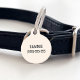 Desteis Cartoon Illustration eines orangen Kürbis. Es gibt personalisierbare Textbereiche für einen Namen und Telefonnummer auf der anderen Seite.