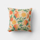 Kissen mit Retro-Vibe. Ein Muster aus geschnitten Orangen, Orangen, grünen Blätter und weißen Blüten.