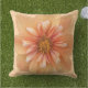 Dress up your indoor oder outdoor Patio Möbel mit diesem dekorativen, quadratischen Kissen, das das Foto eines orangen Collarette Dahlia Blüte auf einem pfirsichfarbenen Hintergrund. Ein schönes, blumengeschmücktes Design! Wählen Sie Kissenstil und Stoff.