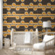 Dieses Design zeichnet sich durch zeitgenössische geometrische Kreise und horizontale Linien in Elfenbeintönen aus, und gelb orange auf einem dunkelbraunen Hintergrund. Es ist ein verziertes, elegantes und dennoch funky-Hipster-Muster, das sich perfekt für den künstlerischen Innenarchitekten, die künstlerische Mode, den trendigen Hipster, Liebhaber Vintager Retro-, Nouveau-Deko-Kunst oder abstrakte geometrische Motive eignet. Es ist in einer Vielzahl von modernen Wohngestaltungen erhältlich, ideal für die Dekoration eines Master-oder Kinderschlafzimmers, Küche, Kinderzimmer, Wohn- oder Familienzimmer, Frauenhöhle, Uni Studiowohnung oder Appartement.