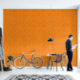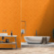 Die orangefarbene, geometrische Struktur dieses Wandbildes ist orange. Eine großartige Möglichkeit, das Schlafzimmer, Bad, Duschbad, Wohnzimmer, Flur oder Büro aufzurichten. Die passende Einrichtung.