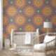 Diese schale und klebige Tapete ist eine faszinierende Mischung aus warmen und coolen Farbtönen. In den großen, stilisierten Blume finden Sie vor allem lebhafte Orangen und Gelb. Diese Blume haben jeweils acht Blätter, die ein symmetrisches und optisch ansprechendes Muster erzeugen. Vor einem dunkelgrauen Hintergrund heben sich die Blume wunderschön hervor. Der Hintergrund ist mit kleineren geometrischen Formen, wie Quadraten und Punkten, in helleren Grautönen verziert. Der Stil dieser Tapete ist eine harmonische Mischung aus Retro und zeitgenössischen Einflüssen. Das kühne Blumenmotiv erinnert an moderne Designs aus der Mitte des Jahrhunderts, während die geometrischen Elemente eine Touch der Moderne hinzufügen. Das Ergebnis ist ein auffälliges Muster, das Lebendigkeit und Ordnung miteinander in Einklang bringt. Zusammenfassend lässt sich feststellen, dass diese Tapete mit Schale und Knüppel lebendige Blumen mit geometrischen Formen verbindet und somit eine hervorragende Wahl ist, um jeden Raum mit Leichtigkeit zu verändern.