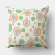 Geometrisches Kreismuster mit sanften, hellorangen und schlängelgrünen Polka Punkten gegen knusprig weiß vorne. Die Rückseite ist hell orange. Freuen Sie sich auf moderne Wohngestaltung. Originale Entwürfe von TamiraZDesign.