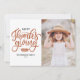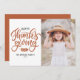 Senden Sie mit dieser Fotokarte Erntedank gute Wünsche und Grüße an Familie und Freunde. Es zeichnet sich durch moderne Kalligraphie und einfaches Blattwerk aus. Personalisieren durch Hinzufügen von Foto und Namen.