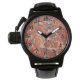 Armbanduhr mit schwarzen Ziffern, die ein Bild des abstrakten Musters des orangefarbenen Jasper-Steins zeigt. Wählen Sie Ihre Uhr aus verschiedenen Stilen. Ein tolles Geschenk für den Rockhund! Bitte beachten Sie, dass in dieser Uhr kein echter Stein ist.